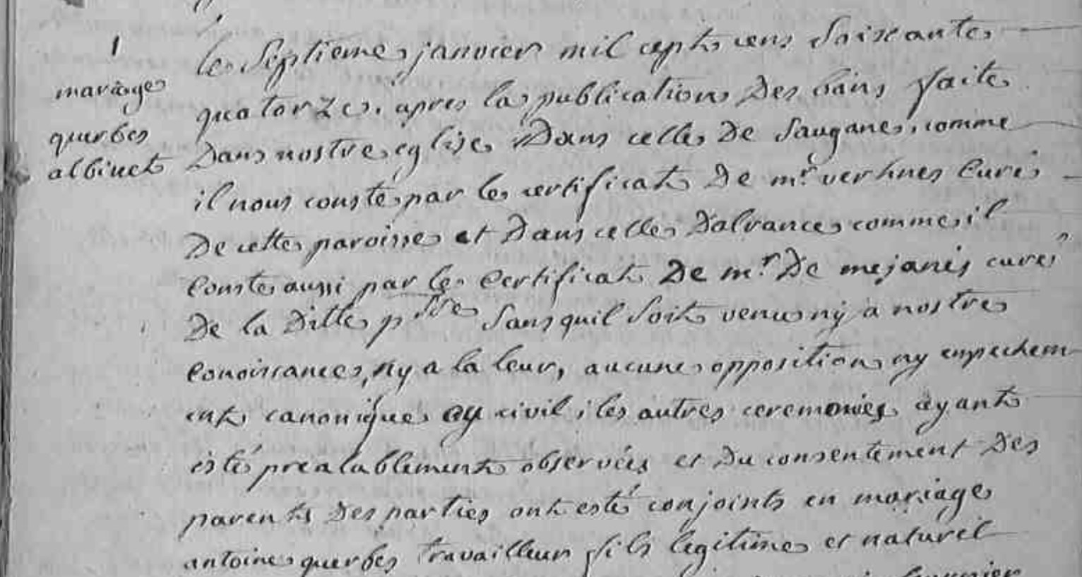 Témoins au Mariage | Frère Gabriel Querbes (24 septembre 1722) Frère Jean Querbes 230 (18 août 1730 - 23 février 1806) Frère Jean Albinet
