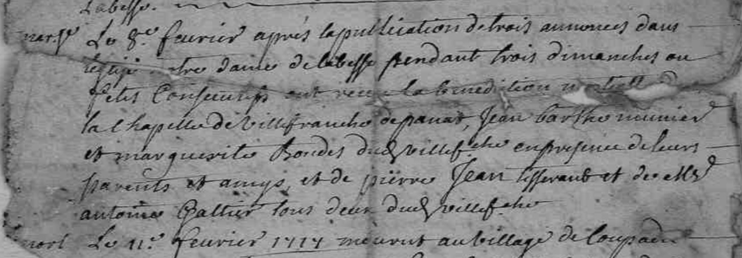 | Mariage (plus...) | 8 février 1727 | Villefranche-de-Panat, Aveyron, FRANCE (La Besse, Villefranche-de-Panat, 12299, Aveyron, Occitanie, France) |