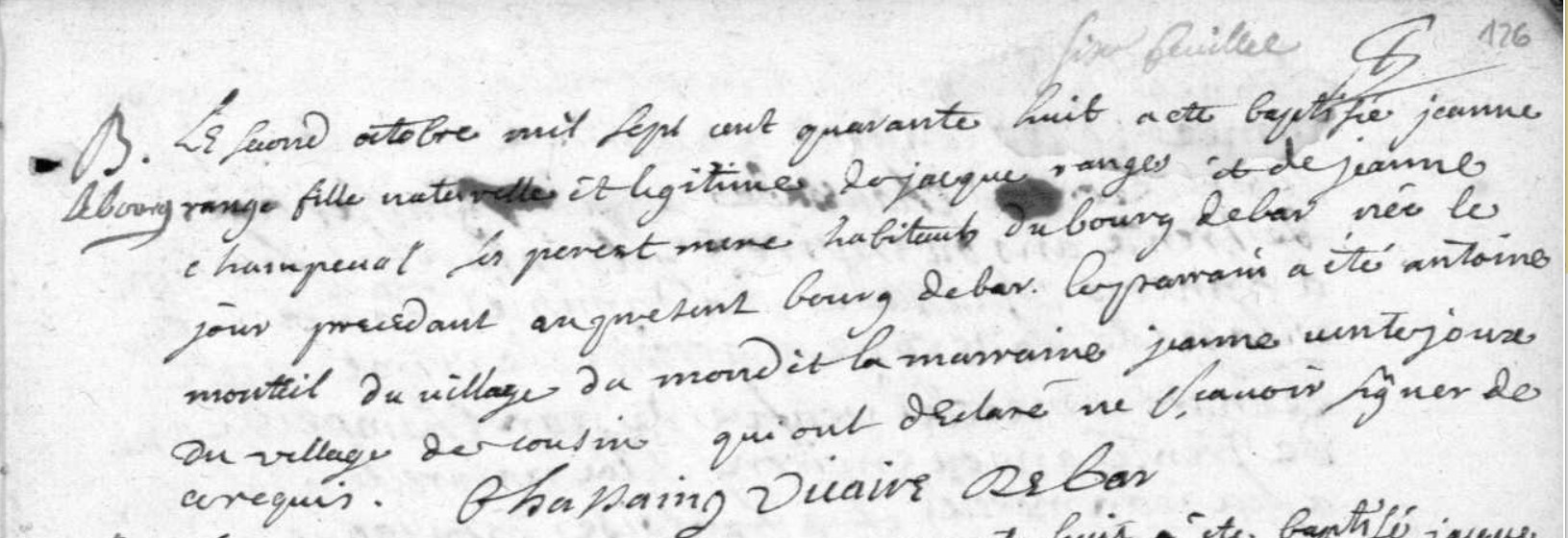 le second octobre mil sept cent quarante huit a été baptisée Jeanne