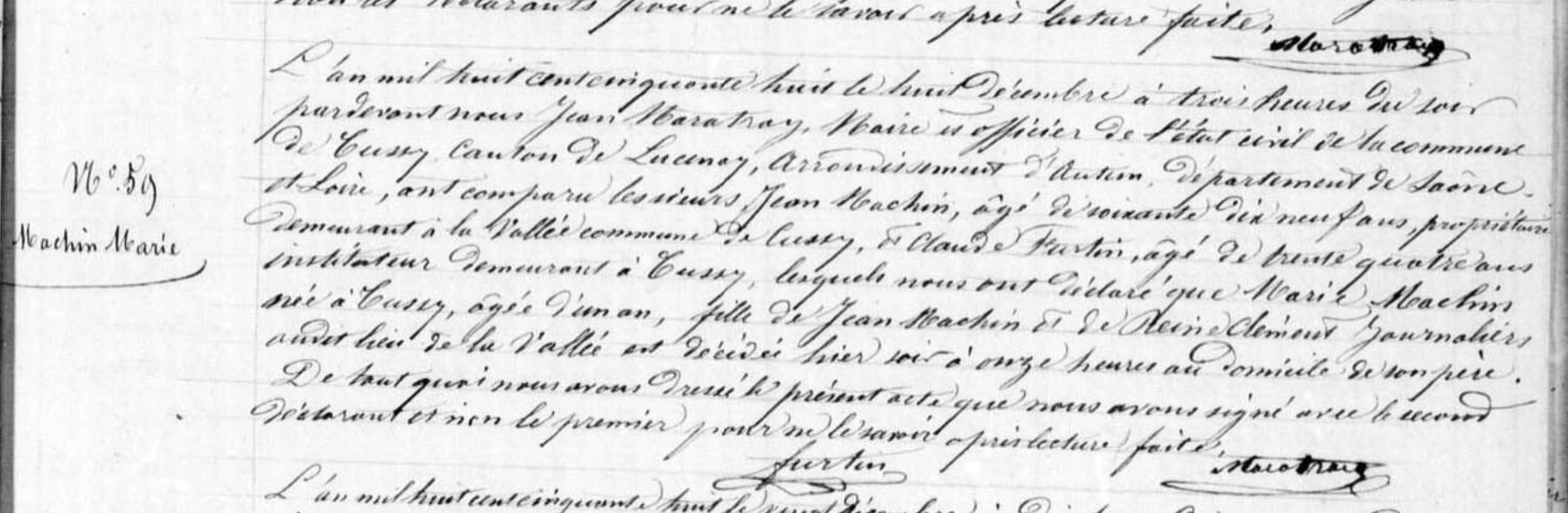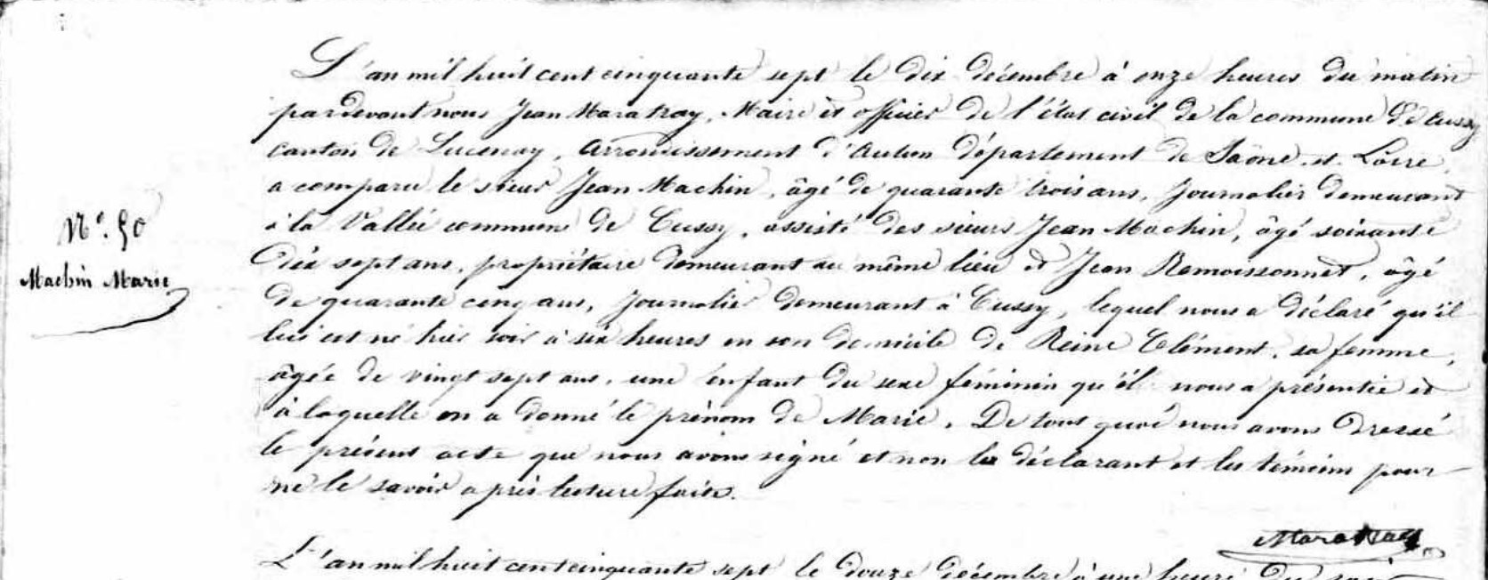 instituteur demeurant à Cussy, lesquels nous ont déclaré que Marie Machin