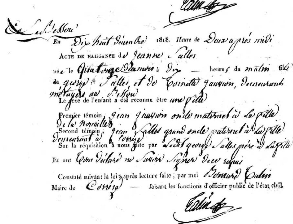 Témoins au Bapteme/Naissance | Oncle maternel Jean Jauvion (29 mars 1803 - 29 mars 1877) Grand oncle paternel Jean Salles