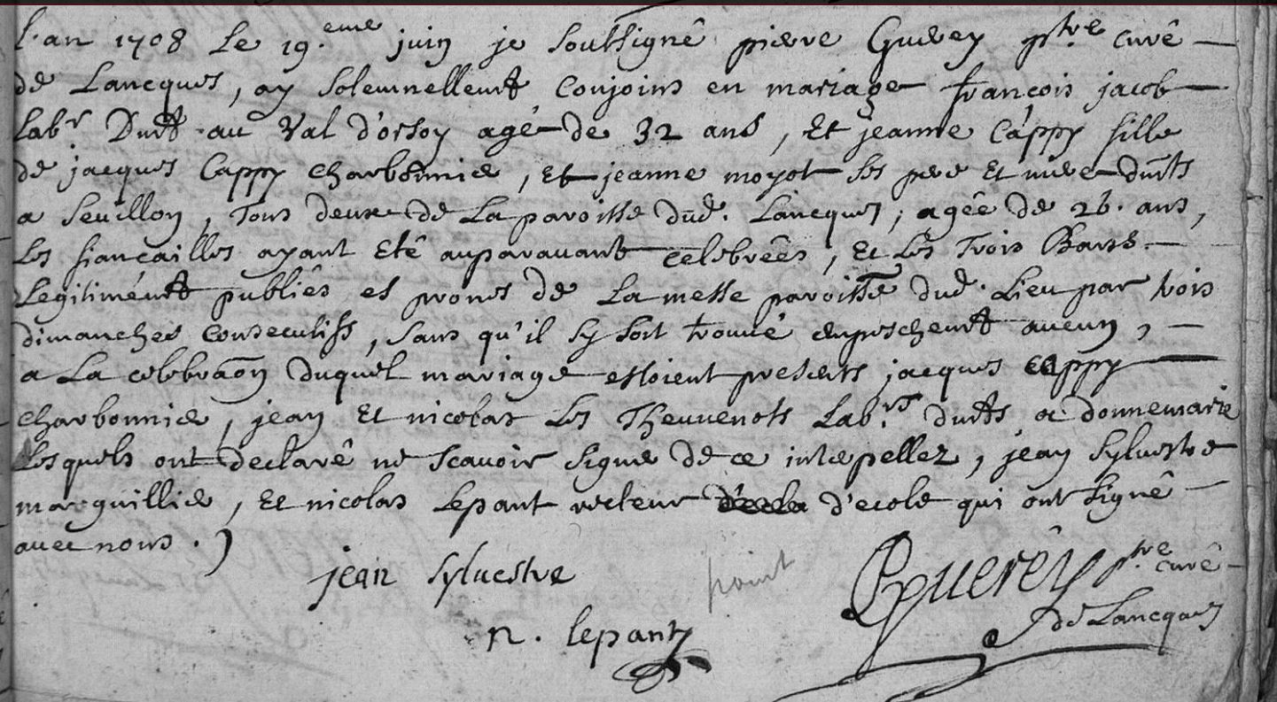 de Lanquet, ay solennellement conjoins en mariage françois jacob