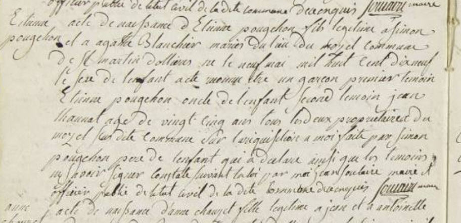 | Prénom | Etienne | | Nom de famille | Poujon | | Profession | Voiturier | | Naissance | 9 mai 1819 | Saint-Martin-d'Ollières, Puy-de-dôme, FRANCE (, Saint-Martin-d'Ollières, 63376, Puy de Dôme, Auvergne-Rhône-Alpes, France) | Témoins au Bapteme/Naissance | Oncle Etienne Poujon (27 avril 1782)
