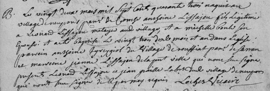 | Prénom | Antoine | | Nom de famille | Lissagou | | Profession | Laboureur | | Naissance | 22 mars 1743 | |