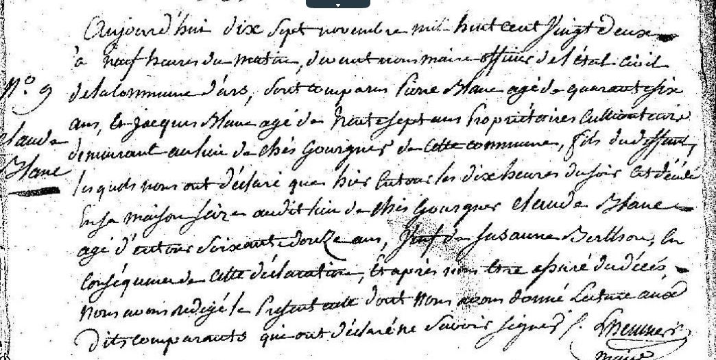 | Père du déclarant présent(e) à la naissance de | Marie Blanc 79 (9 mars 1812) | | Grand-père présent(e) à la naissance de | Jean Blanc (2 mai 1808) |