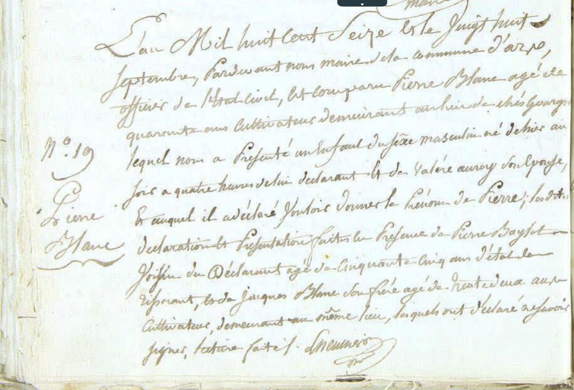 | Frère présent(e) à la naissance de | Antoine Blanc (12 janvier 1840) |