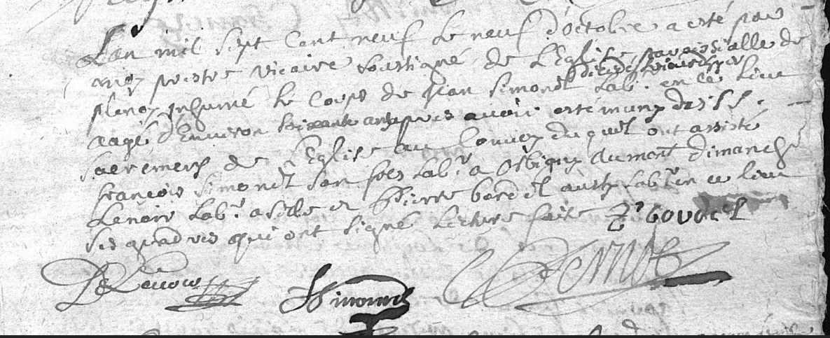 | Prénom | Jean | | Nom de famille | Simonel | | Profession | Laboureur | | Naissance | 1649 | Plesnoy, Haute-Marne, FRANCE (, Plesnoy, 52311, Haute Marne, Grand-Est, France) | | Décès | 9 octobre 1709 à l'âge de 60 ans | Plesnoy, Haute-Marne, FRANCE (, Plesnoy, 52311, Haute Marne, Grand-Est, France) |
