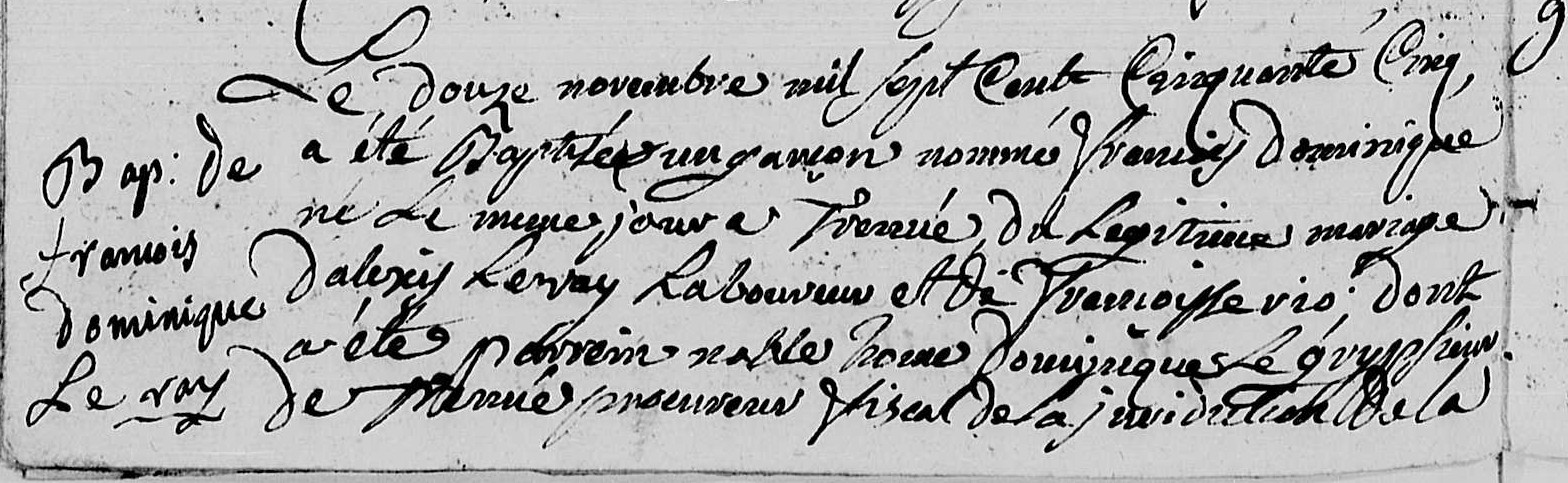 | Prénom | François Dominique | | Nom de famille | Le Ray | | Naissance | 12 novembre 1755 | Arzal, Morbihan, FRANCE (, Arzal, 56004, Morbihan, Bretagne, France) | | Baptême | 12 novembre 1755 | Arzal, Morbihan, FRANCE (, Arzal, 56004, Morbihan, Bretagne, France) |