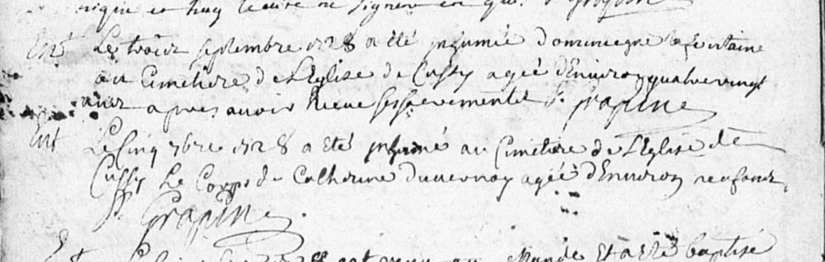 | Femme du défunt présent(e) au décès de | Jean Charlot 1352 (19 mars 1641 - 23 mars 1722) |