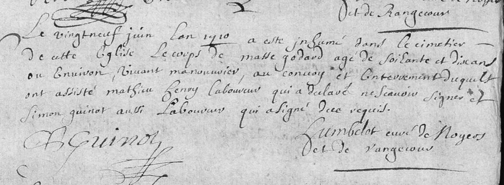 le vingt neuf juin l'an 1710 a este inhumé dans le cimetiere