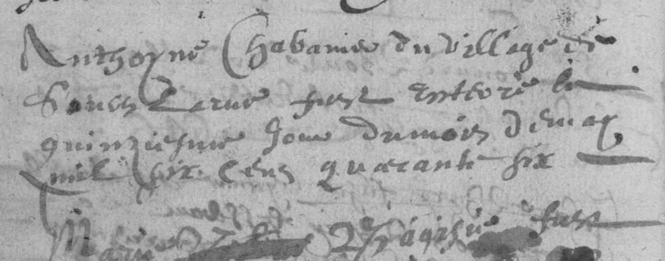 Anthoine Chabanier du village de ... ... enterré le quinzieme jour du mois de may mil six cens quarante six