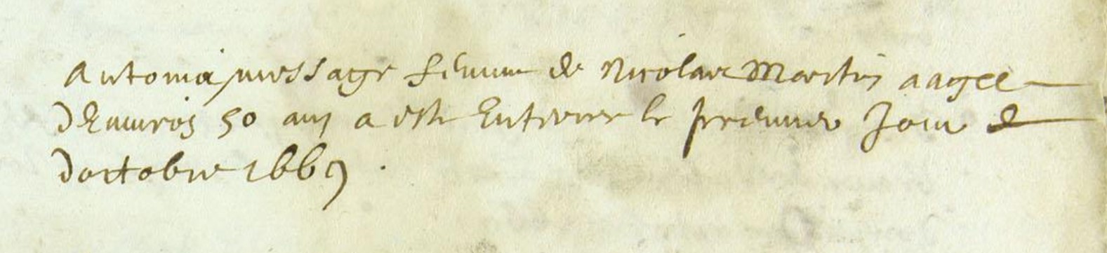 | Prénom | Anthonia | | Nom de famille | Message | | Naissance | 1619 | Saint-Maigner, Puy-de-dôme, FRANCE (, Saint-Maigner, 63373, Puy de Dôme, Auvergne-Rhône-Alpes, France) | | Décès | 1 octobre 1669 à l'âge de 50 ans | Pionsat, Puy-de-dôme, FRANCE (, Pionsat, 63281, Puy de Dôme, Auvergne-Rhône-Alpes, France) |