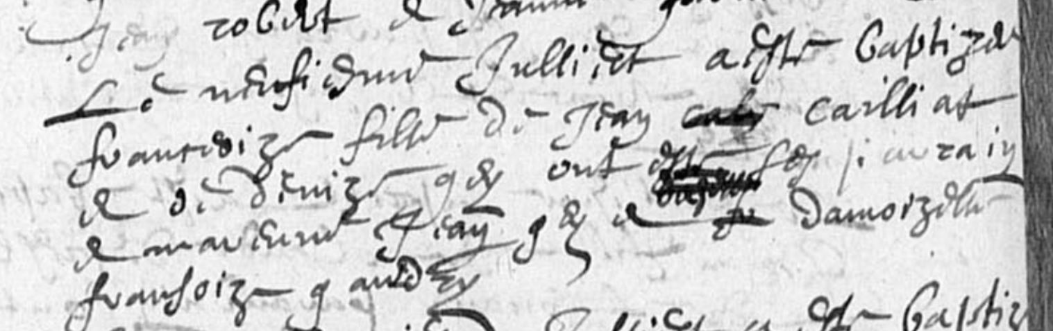 Le neuvième juillet (1645) a été baptisée Françoise fille de Jean CAILLET et de Denise GEY ont été ses parrain et marraine Jean GEY et Damoiselle Françoise GAUDRY