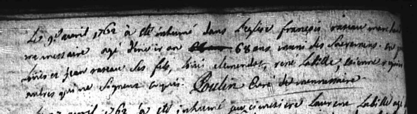 9 avril 1762 à l'âge de 67 ans