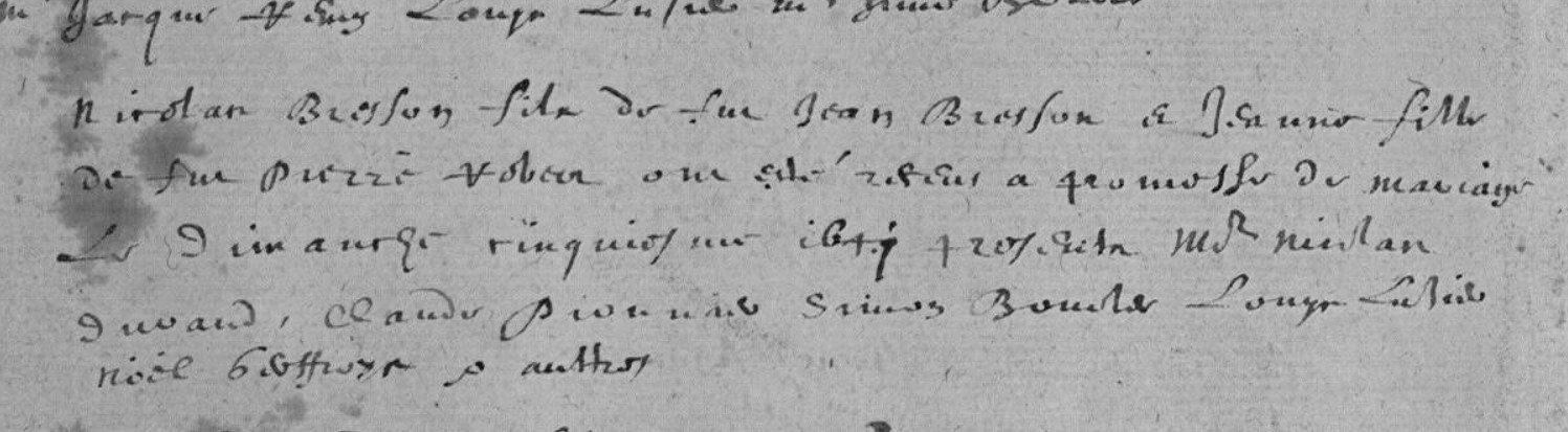 | Prénom | Nicolas | | Nom de famille | Bresson | AD52_Edepot00269_01 vue 27 | Naissance (plus...) | 11 février 1615 | Is-en-Bassigny, Haute-Marne, FRANCE (, Is-en-Bassigny, 52248, Haute Marne, Grand-Est, France) | Décès: AD52_Edepot11278_01 vue 34 | Décès (plus...) | 26 mars 1695 à l'âge de 80 ans | Is-en-Bassigny, Haute-Marne, FRANCE (, Is-en-Bassigny, 52248, Haute Marne, Grand-Est, France) |