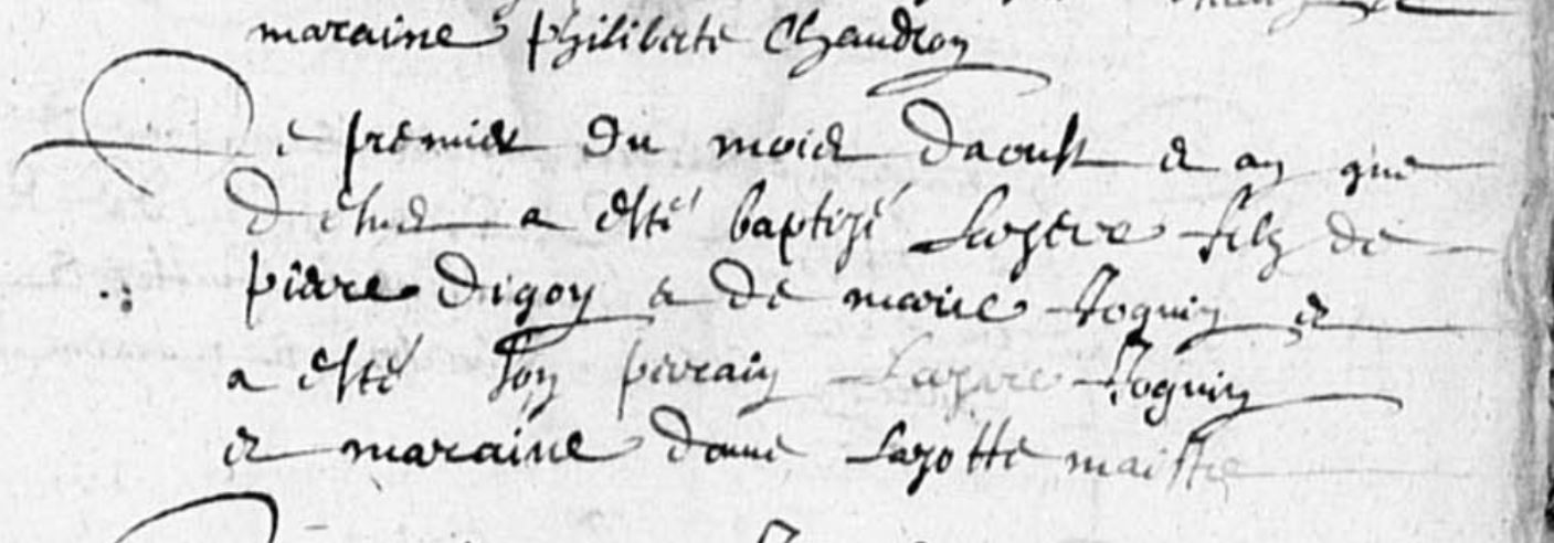 | Prénom | Lazare | | Nom de famille | Digoy | | Naissance | 1 août 1644 | Cussy-en-Morvan, Saône-et-Loire, FRANCE (, Cussy-en-Morvan, 71165, Saône et Loire, Bourgogne-Franche-Comté, France) | | Baptême | 1 août 1644 | Cussy-en-Morvan, Saône-et-Loire, FRANCE (, Cussy-en-Morvan, 71165, Saône et Loire, Bourgogne-Franche-Comté, France) | | Décès | 18 juin 1695 à l'âge de 51 ans | Cussy-en-Morvan, Saône-et-Loire, FRANCE (, Cussy-en-Morvan, 71165, Saône et Loire, Bourgogne-Franche-Comté, France) |