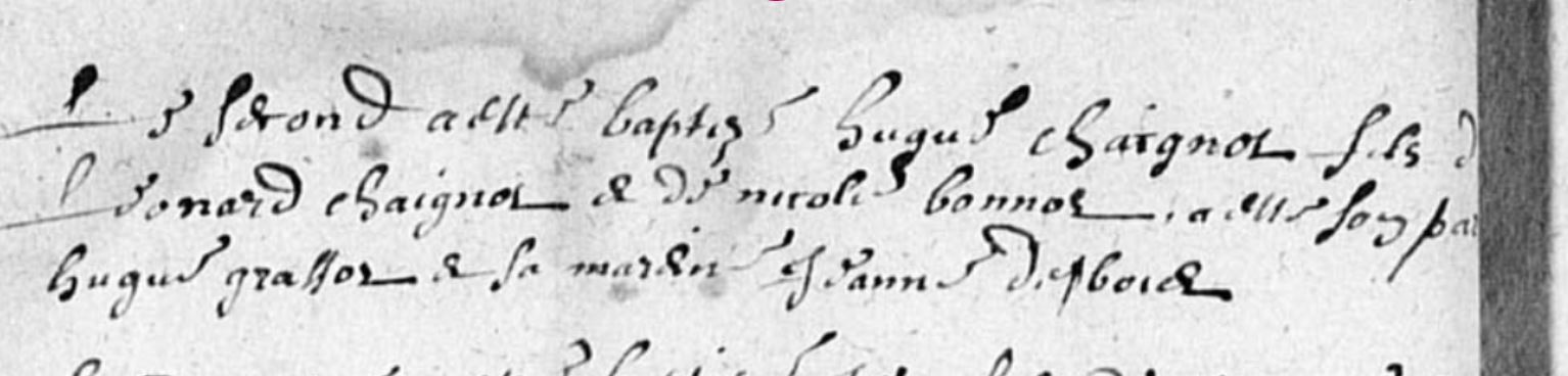 | Prénom | Hugues | | Nom de famille | Chagniot | | Profession | Laboureur | Pour Dominique Reix (Généanet) né en 1634 ! | Naissance (plus...) | 2 avril 1646 | Anost, Saône-et-Loire, FRANCE (, Anost, 71009, Saône et Loire, Bourgogne-Franche-Comté, France) | | Baptême | 2 avril 1646 | Anost, Saône-et-Loire, FRANCE (, Anost, 71009, Saône et Loire, Bourgogne-Franche-Comté, France) | | Décès | 12 décembre 1704 à l'âge de 58 ans | |