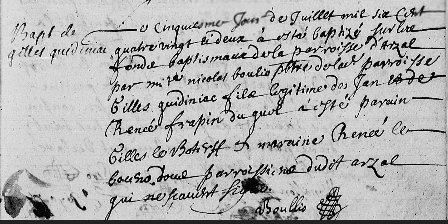 Gilles Quidiniac, fils légitime de Jean et de