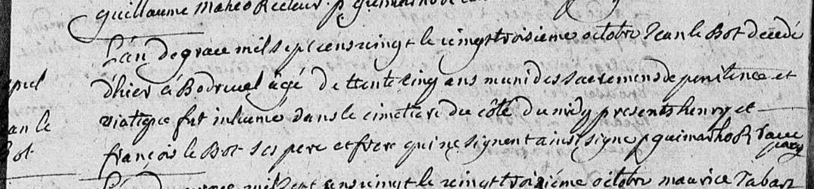 en présence des dits Henry Le bot, Guillaume et Jean Les guill