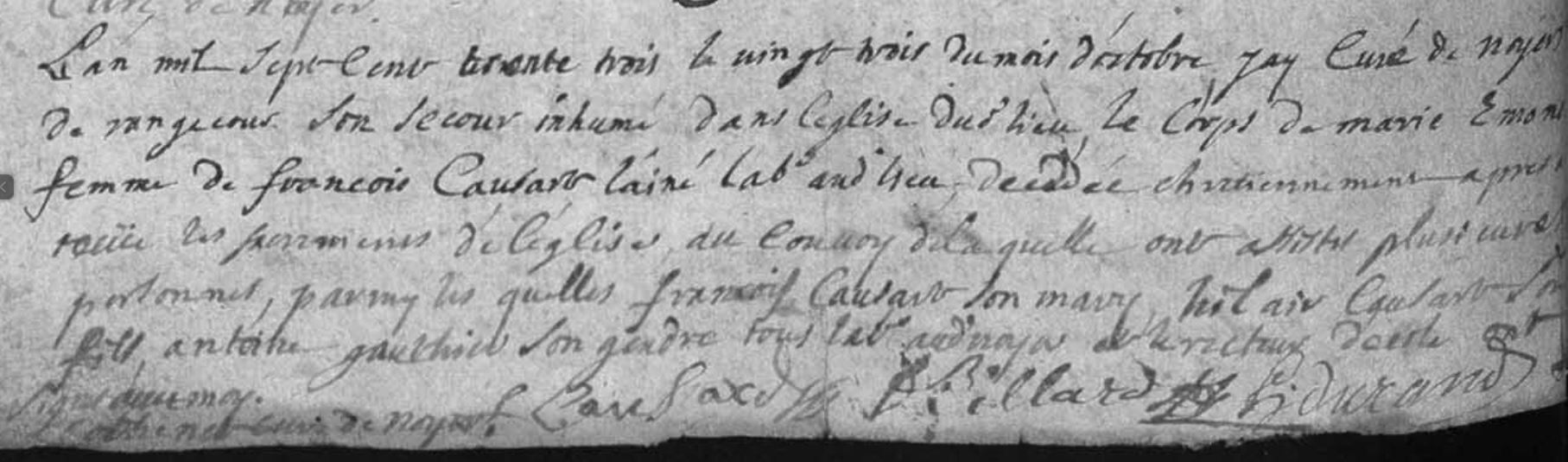 | Prénom | Marie | | Nom de famille | Hemmonot | | Naissance | 26 mai 1658 | Daillecourt, Haute-Marne, FRANCE (, Daillecourt, 52161, Haute Marne, Grand-Est, France) | | Baptême | 26 mai 1658 | Daillecourt, Haute-Marne, FRANCE (, Daillecourt, 52161, Haute Marne, Grand-Est, France) | | Décès | 23 octobre 1733 à l'âge de 75 ans | Noyers, Haute-Marne, FRANCE (, Noyers, 52358, Haute Marne, Grand-Est, France) |