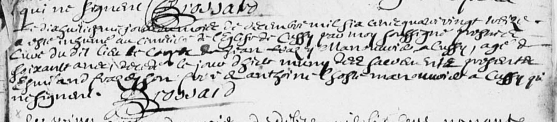 a été inhumé au cimetierre de l'église de Cussy par moy soussigne ....