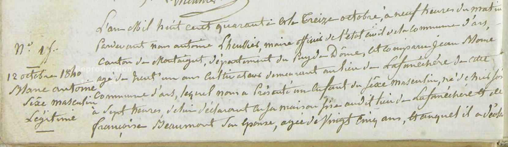 L'an mil huit cent quarante et le treize octobre à neuf heures du matin