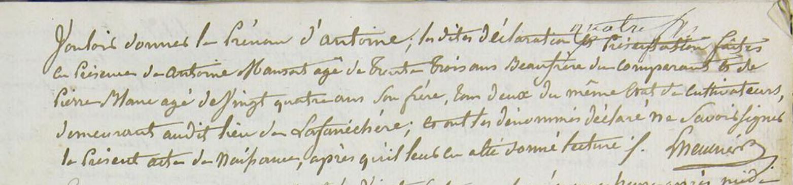 demeurants audits lieu de Lafanéchére, et ont les dénommés déclaré ne savoir signer