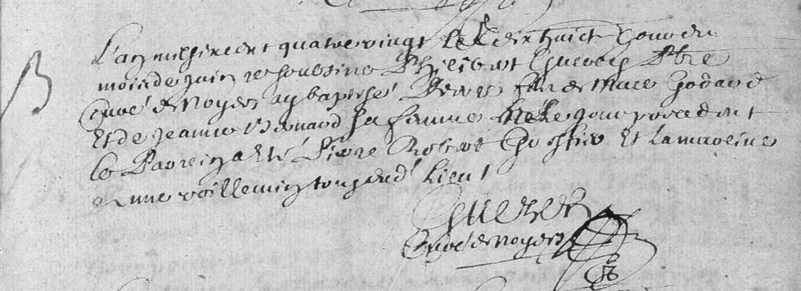 | Prénom | Pierre | | Nom de famille | Godard | | Naissance | 17 juin 1680 | Noyers, Haute-Marne, FRANCE (, Noyers, 52358, Haute Marne, Grand-Est, France) | | Baptême | 18 juin 1680 | Noyers, Haute-Marne, FRANCE (, Noyers, 52358, Haute Marne, Grand-Est, France) | Témoins au Bapteme/Naissance | Parrain Pierre Robert Marraine Anne Voillemin