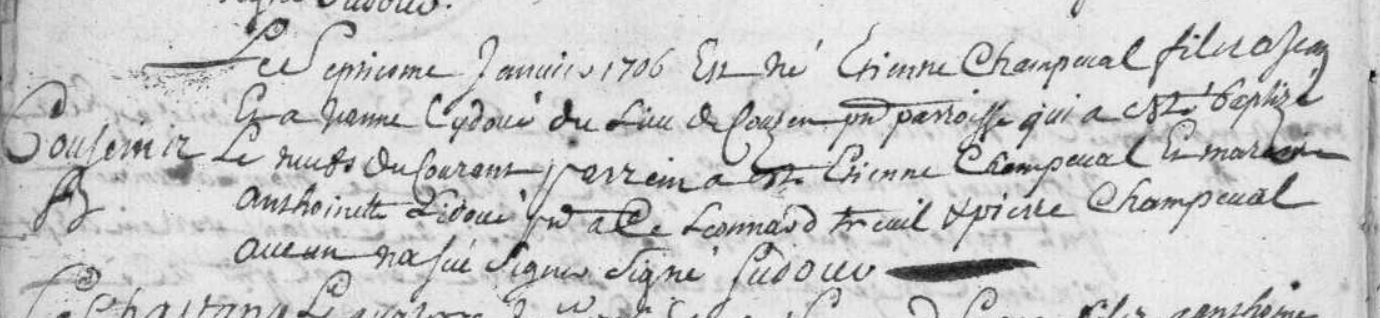 | Prénom | Etienne | | Nom de famille | Champeval | | Naissance | 7 janvier 1706 | Bar, Corrèze, FRANCE (, Bar, 19016, Corrèze, Nouvelle-Aquitaine, France) | | Baptême | 7 janvier 1706 | Bar, Corrèze, FRANCE (, Bar, 19016, Corrèze, Nouvelle-Aquitaine, France) | | Décès | avant décembre 1774 à l'âge de 68 ans | Naves, Corrèze, FRANCE (, Naves, 19146, Corrèze, Nouvelle-Aquitaine, France) |