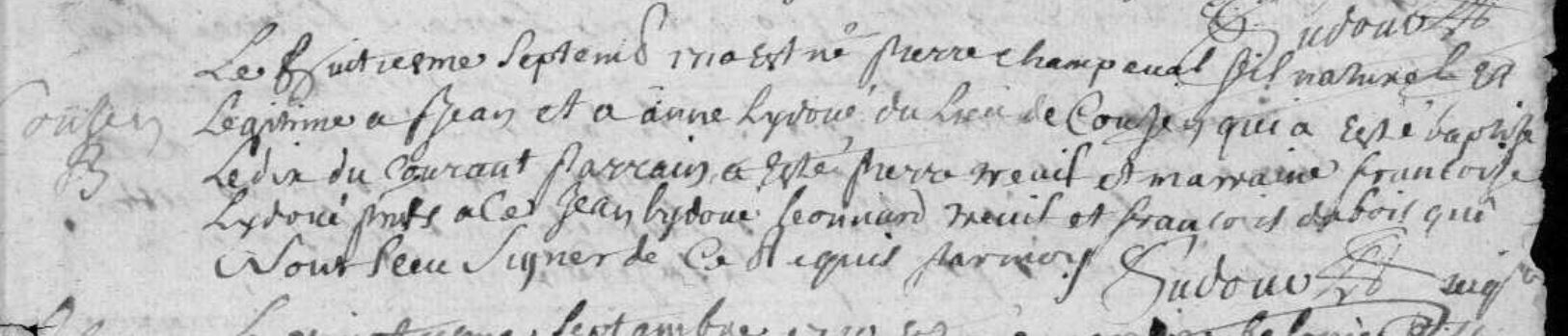 | Prénom | Pierre | | Nom de famille | Champeval | | Naissance | 8 septembre 1710 | Bar, Corrèze, FRANCE (, Bar, 19016, Corrèze, Nouvelle-Aquitaine, France) | | Baptême | 8 septembre 1710 | Bar, Corrèze, FRANCE (, Bar, 19016, Corrèze, Nouvelle-Aquitaine, France) |